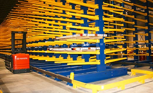 Cantilever rack is used to store long or bulky items, such as furniture, lumber, pipe and tubing