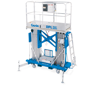 Genie® DPL™ Super Series is a cost-effective two-worker lift option. These versatile machines combine tight access maneuverability with ample space for two workers and their tools on a large platform. They offer exceptional stability with a patented aluminum mast system, heavy-duty lifting chains and welded steel base that stands up to rough jobsite conditions. Bottom line, they’re the ideal choice for big jobs in small spaces.