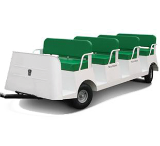 Taylor-Dunn’s T-942 is a 12-passenger trailer designed for use with the BT-280 E-Tram personnel carrier.