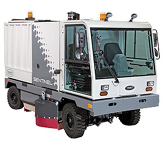Tennant’s Sentinel high performance outdoor rider sweeper easily maneuvers in harsh environments while reducing dust with all-weather dry dust control.